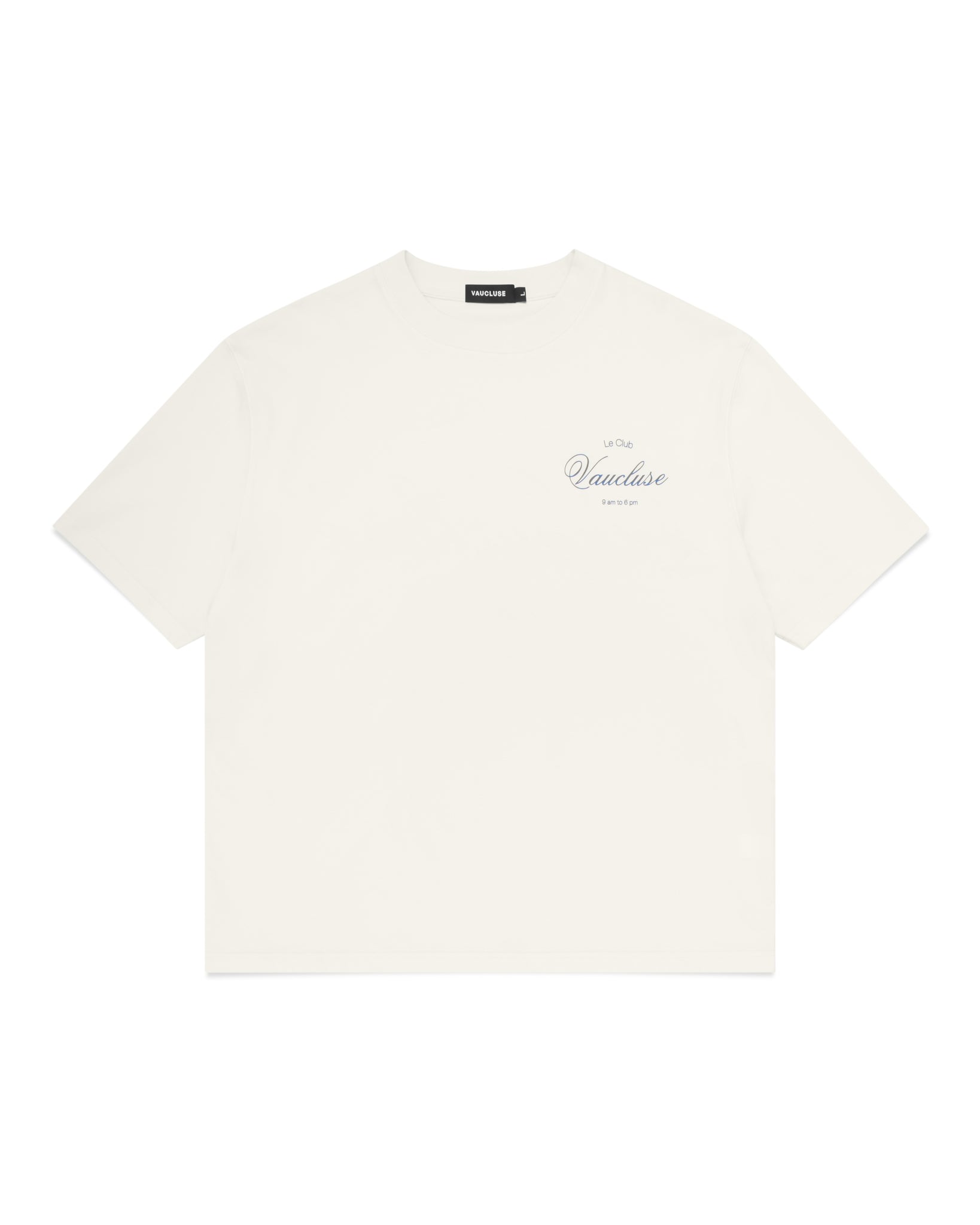 Introducing the Le Club Vaucluse T-Shirt in Butter. Featuring our Le Club Vaucluse graphic across the left chest and back. Cut to a slightly oversized fit, crafted from a mid weight 255gsm 100% cotton.